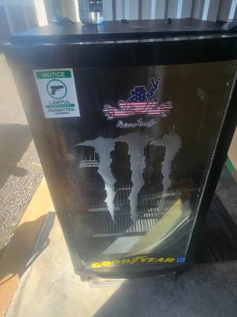 Nice drink cooler has some wear but looks great. In storage 700$ cash or trade. Approximately 5' tall maybe 30" wide
