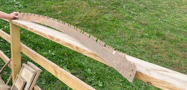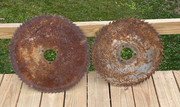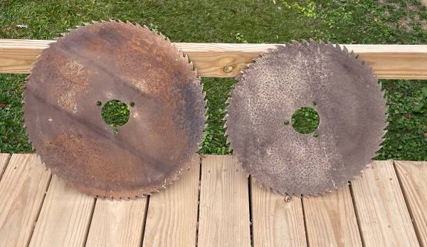 3 Old saw blades 2 round, 1 long