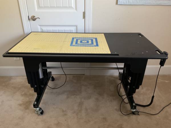 This quilter’s dream table currently sells new for $4,700. I am asking $1,500. The table is very solid and heavy. You will need an appropriate vehicle for transportation and help to load it. Seller is not able to help with the loading.