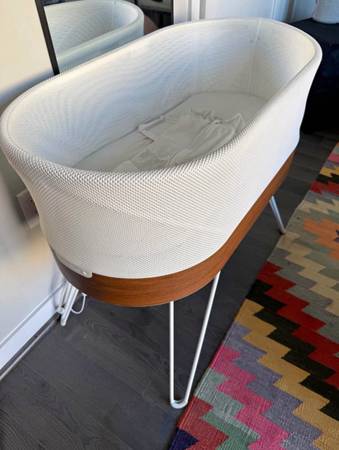 Snoo bassinet in great condition and recently deep cleaned. Comes with 6 sleep sacks (5 small, 1 medium) and sheets (2 liners, 1 Snoo fitted sheet, and 1 homemade fitted sheet)
