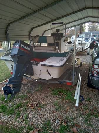 Carolina skiff sea chaser,17.5 ft. Boat,70 hp. Yamaha engine,livewell,storage compartment in front and rear of boat,new bilge pump ,lowrance fishfinder,front seat installed on front platform of the boat,center console,new trailer,tires in great shape,motorguide trolling motor with foot petal and handheld remote control.shes water ready!!!!!!!...only reason I'm selling it I brought same boat only difference it's 21 ft