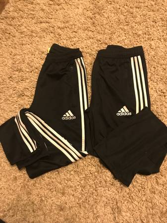 Two pairs are $5 each. Still in fine condition but older. Adidas and New balance brand biys large and new balance is 14/16 Two other adidas pairs are very nice. Have pockets and zippers at ankle....