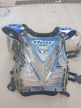 All are used but in decent shape. The strap for one of the shoulder pads on the chest protector broke so it's now attached via a large zip tie. Replacement strap may be available but the zip tie has been working just fine so it's one of those temporary repairs that turned permanent. You know what I'm talking about...
