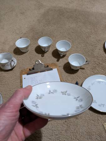 Arlen Mayfair vintage fine china #1711. Made in Japan. Excellent condition. The Platinum trim is intact. 1 small chip and 1 slight chip. Mid-century. Contains: 8, 10.25-inch plates 10, 7.5-inch...