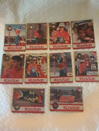 Vintage 1992 Darrell Waltrip flag for $20..I have 3 26"x29" NASCAR hoods in good condition.The Dr Pepper and Jeff Gordan hoods are plastic and the Dale jr is metal.The plastic ones have scuffs but they could be