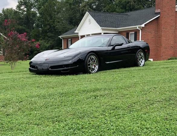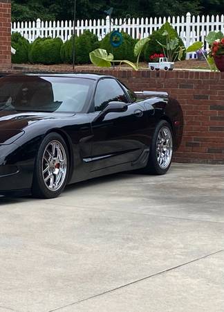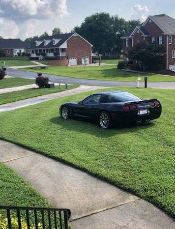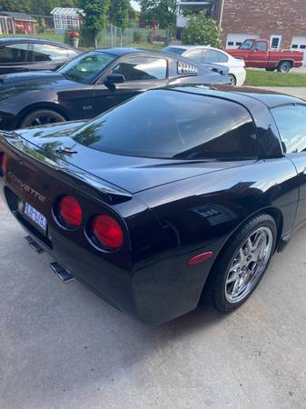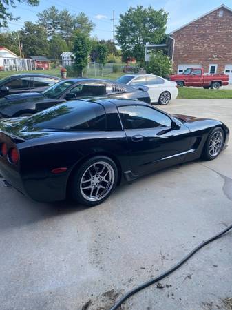 2001 C5 Corvette for sale. Black on Tan leather. Paint is good, interior good. AC Cold. Z06 wheels and solid targa top. Automatic, LS1 Runs great. Lowered and rides like a lowered Vette. 126,500 Miles. Don't drive it much anymore, stays in the garage. Clean Title 12,500 OBO