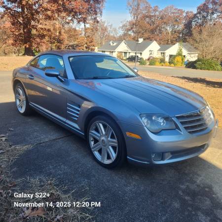 2004 Chrysler Crossfire Low 55k miles. Replaced all sensors, alternator and serpentine belt around 49k. Oil changed regularly at dealership in Winston Salem. Car is in excellent mechanical condition. The only thing not working is the cup holder which has never worked since I have owned the car. Not going to find a better deal on this make and model with this low of mileage anywhere in the US.