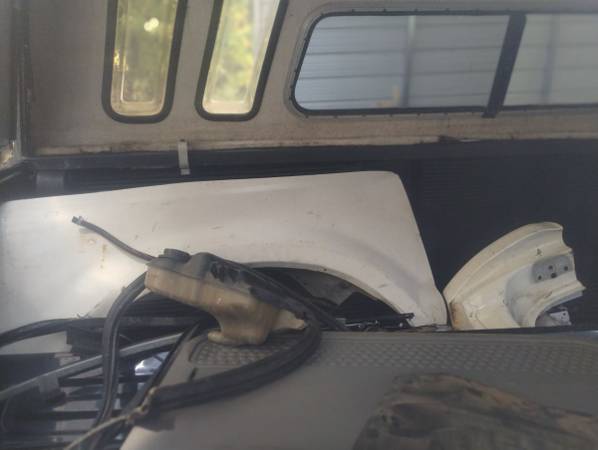 Tons of spare parts including fifth wheel plate, bed liner, camper top, tonneau cover, factory headlights and turn signals, spare factory grill, passenger front and rear windows, drivers side bed wheel arch cut-out, passenger side cab corner cut-out, overflow reservoir, and miscellaneous. Can send longer video.