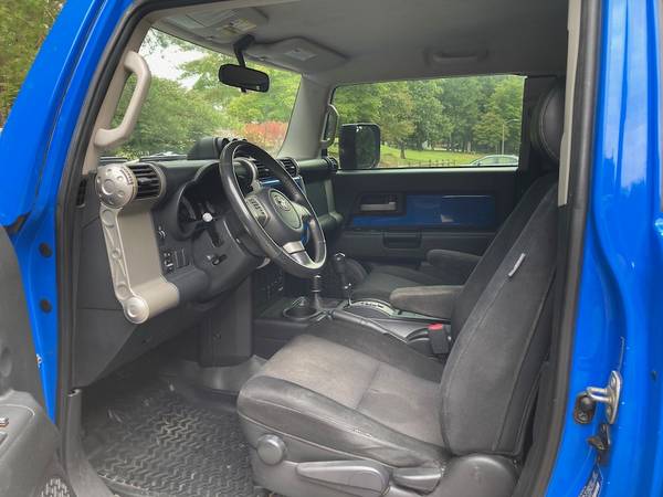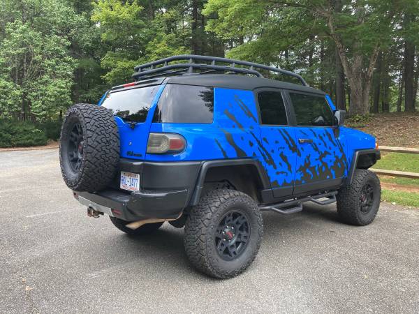 2007 Toyota FJ Cruiser 4x4 in Voodoo Blue with six inch lift, TRD rims. Roof rack. Aftermarket front bumper. Trailer hitch. Step bars. New tires and brakes. Updated stereo connects to your phone. Clean inside and out. In good condition. Upholstery isn't perfect but it’s not bad. Paint chips here and there. Small rust spot above windshield on a trim piece. Maintenance is up to date. Recent oil change and front/rear diff fluid. Make me an offer $15,500 OBO No trades.