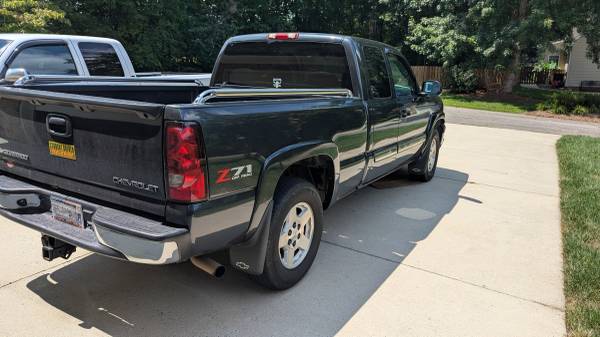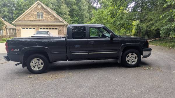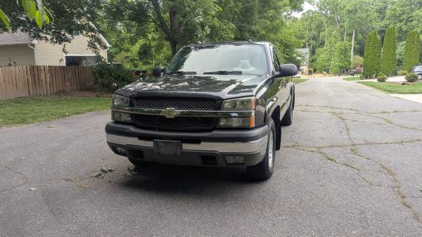 For your consideration is a one-owner 2004 Chevy Silverado Z71 extended cab 1500 pickup. It has been garage-kept its entire life and is a very dependable truck. AC blows extremely cold, and it drives great. It is equipped with leather seating and has the towing package. At the time of this listing, it has 183587 miles and continues to be my daily driver. To list all of the maintenance-related items that have been done recently includes a new transmission (summer of 2021), rear main seal replaced, new brakes and rotors, 1 front axle replaced, belts, lower radiator hose, thermostat, waterpump, coolant and radiator flush, and the brake system was flushed. The only reason I'm selling is that I inherited a 2000 Silverado when my dad passed, and I do not need two trucks. Please feel free to ask any questions, and thanks for looking.