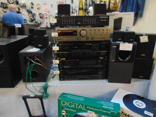 Vintage Stereo Receivers, Cassette players, portable CD players, DVD players and vintage speakers.