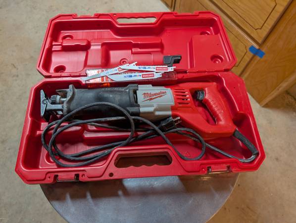 Milwaukee Sawzall 6519-31 Reciprocating Saw Kit - Red 12amp Motor Corded 120v Works great. Comes with a blade box and three blades.