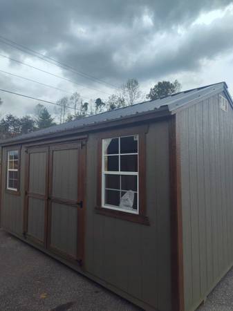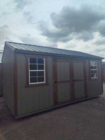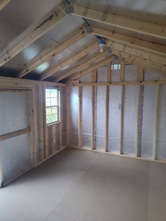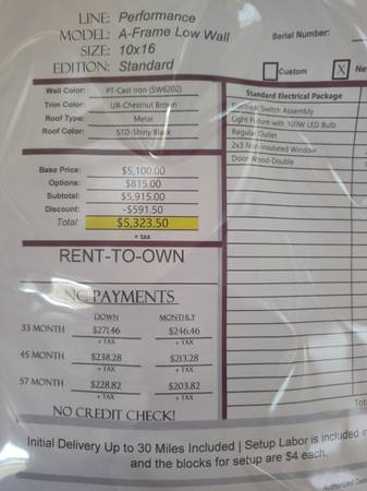 10x16 LP Smart Siding. LP Techshield. LP Prostruct Flooring.Sherwin Williams Emerald Rain Refresh Paint. European Spruce Wood Framing. All high quality materials in our buildings. Rent to own...