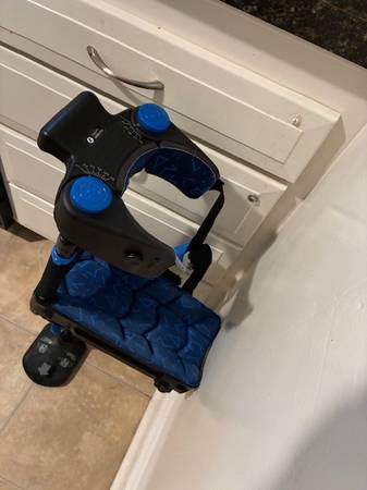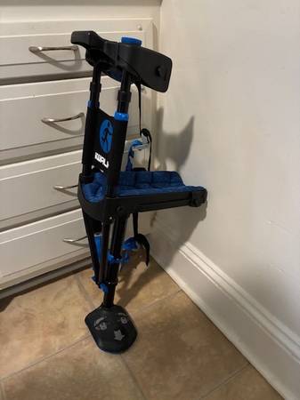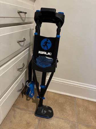 The iWalk was a wonderful way for me to get around while I was non-weight-bearing for a couple months. I used it mostly to go up and down stairs and used a scooter at other times. I found it very easy to move around and to take on and off. I felt very safe when using it. The iWalk is in near perfect condition other than a few scuffs. The iWalk adjust to be used with right or left knee.