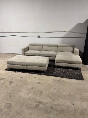 This two-piece Sofia Vergara Sorrento sectional comes with the matching storage ottoman. Still sits great and super comfortable. Features adjustable headrests and a clean, modern design from Sofia Vergaraβs signature furniture line.