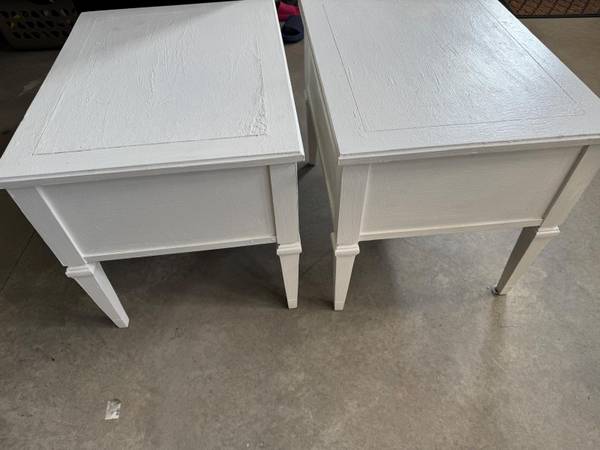 I'm selling a set of 2 wood side tables with drawers, 26"x20"x23'' each for $25. To be picked up, no delivery available. Call or text (336) fiveTwo1-3fourNine8.