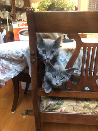 Free Kittens! Three sweet and playful kittens born in July. Use litter box and eat dry or wet food. Get along great with dogs. Love playing both outside and inside. 1 grey boy, 1 grey girl, 1 salt...