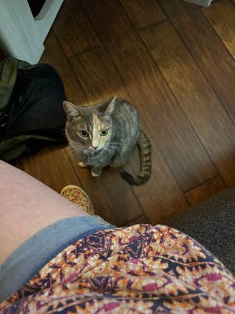 I have to move and can’t take my kitten with me, she will come with food. I have a very special calico kitten she’s got a personality that is on it own. She can be shy,she can b lovey dovey but she doesn’t like being touched she can touch u but you can’t touch her or she will scratch you. She is a sweetheart at a distance. She stays inside most of the time she’s been fixed, had her rabies shots.