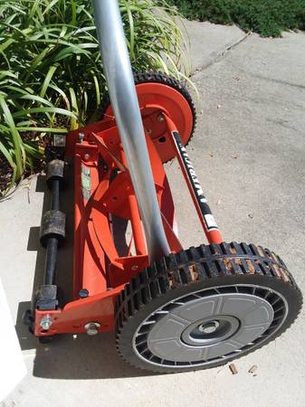 American Lawn Mower Company 14" Push Reel Lawn Mower Mower cuts great, but too low for my volunteer grass/fescue yard. EUC, wheels a bit dusty. Manual included. Manufacturer: American Lawn Mower...