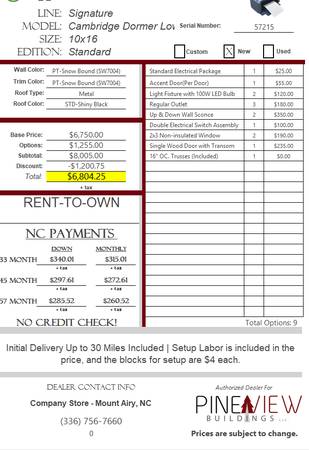 -NO CREDIT CHECK!!! -RENT TO OWN this building for $285 down and $261+tax ***Built with premium materials and attention to detail, this shed is designed to last and elevate your property’s value!!...
