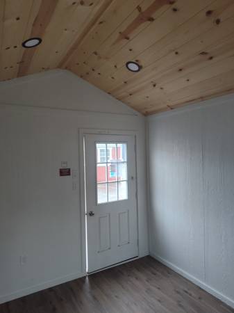Full finish out. I have a few different ones of this exact same build in stock. I have one with an external plug hook up for electricity and I also have one with a 6 space breaker box electrical panel. Insulated. Edwards Oak flooring. Pine tongue and groove ceiling. LP Smart siding. Buy at cash price or RENT TO OWN at $357+tax down and $331+tax monthly