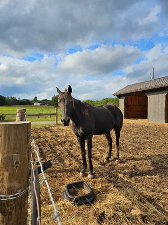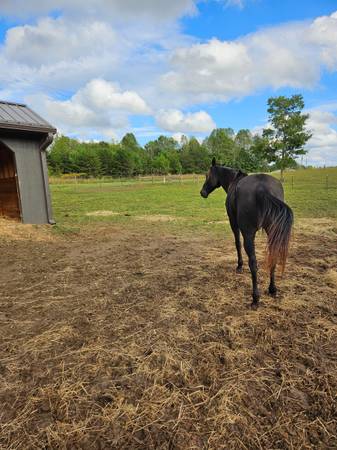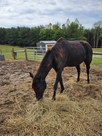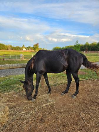 Broke to ride and pull a buggy. Suitable as companion, for breeding, or occasional light riding or driving. Good conformation. Good feet. Very friendly and easy to handle, good for farrier etc. Just under 15h. Purchased as companion for our very old mare but hasn't worked out. No fault of this mare.