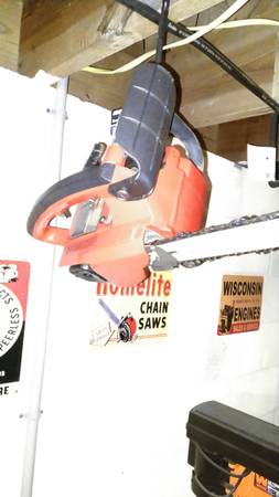 Two vintage homelite top handle saws. I restored them about two years ago and stored them without gas in them. I also have a box of parts to go with them. And a third parts saw. Neat little saws. Sold as is. $80.