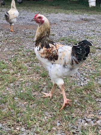 The dad is an olive egger, hens(mom) are golden comets, RIR, Easter eggers. They were born this past spring, not aggressive at all. I just have too many roosters. They are 10 each or all 5 for 40.