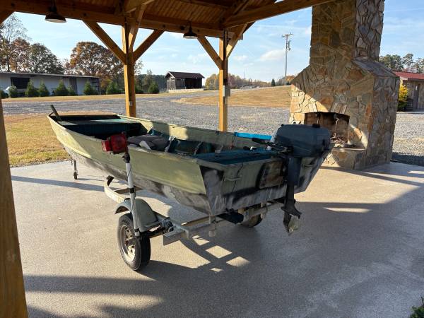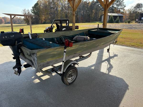3.5hp outboard and trolling motor. Needs new carpet. Good winter project ready for spring. New tires on trailer. Boat was titled.
