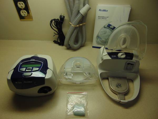 ResMed S8 Elite CPAP Hi3 Humidifier 6' Hose OEM power Supply Carry bag Sanitized and tested 8,000 run Hrs. Non-smoking home