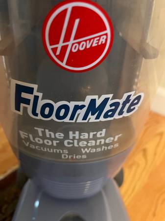 Electric Hoover Floor Mate for cleaning & drying hard surfaces, such as wood, tile, ceramic. Stands 44” high and the cleaning surface is 13” wide. Uses hot water. Used, good condition $20