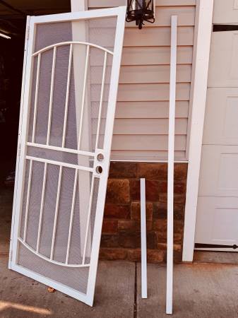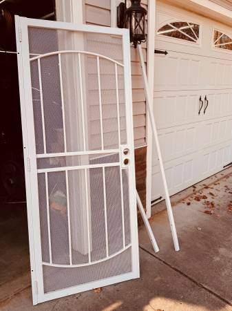 This is a brand new security door that I purchased for my porch. It has never been installed. I decided to go another route with my doors but had already taken this out of the wrapping and thrown the wrapping away. I have the hardware to install it also. It does not come with any locks or the door closer. The door cost $209 plus tax, and we had to drive to Kannapolis to pick it up. Any reasonable offer will be considered.