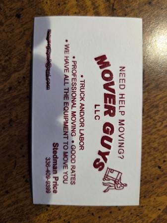 Mover Guys LLC in business for over 12 years. Call 336-40nine-9399. Labor/hauling/moving. Small and large jobs. Garage clean outs. Veteran owned.