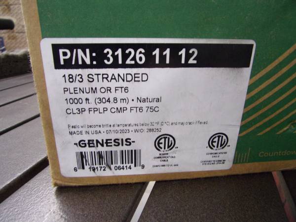 Genesis Cable 18/3 & 16/2 Stranded Plenum 1000ft - materials - by...