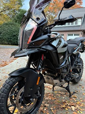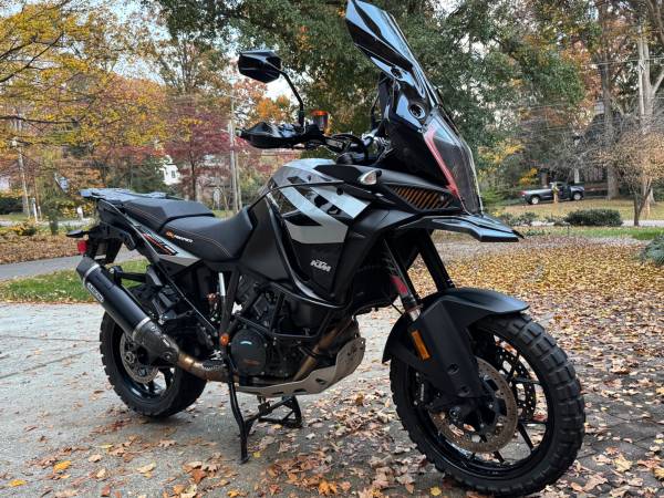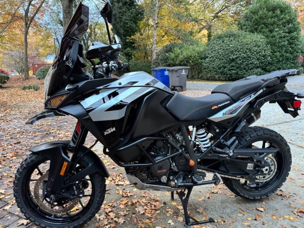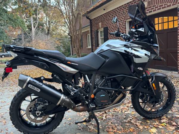 KTM 1290 SAS for sale, 14900 miles with full service history, Arrow muffler, KTM Powerparts, KTM Powerpart seats, crash bars and big KTM skid plate, the bike is in great condition, never had an issue. A set of panniers and top case can be purchased for a little extra. Dark Puig windshield for wind and rain protection (original KTM windshield included). Original, new KTM muffler and seats included. Rear bags and TomTom navigation not included in the price! KTM Quickshifter installed on the bike.