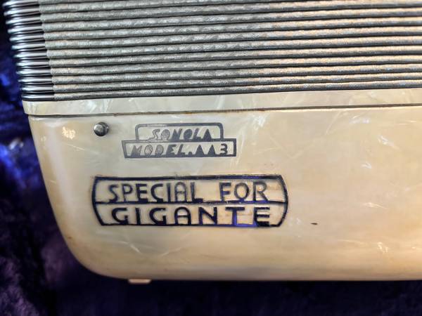 A Sonola Accordion - Model AA3 - Special for Gigante. Plays great. This and another accordion I have for sale were instruments I have played for a good while. Please call or text with any questions....