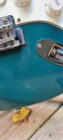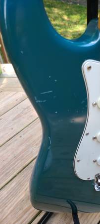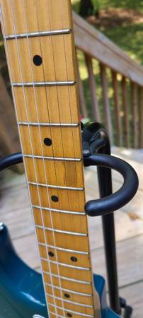 I picked it up at a guitar show many years ago. It's got plenty of dings, scratches, and war wounds from over 30 years of life, but it's a sweet player. The color is a faded blue - almost green on the front, with more of the original blue color on the back.