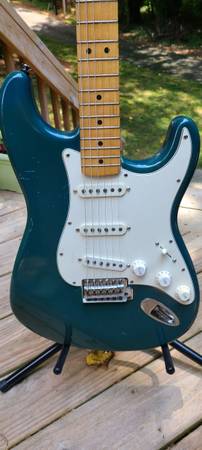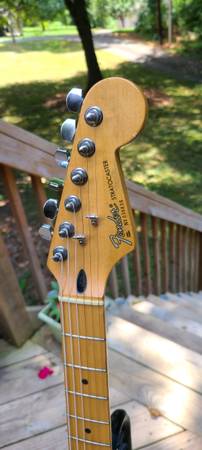 1992/1993 MIM Fender Stratocaster. Previous owner sanded off part of the headstock serial number to make it appear like a USA number, but it's an MIM.