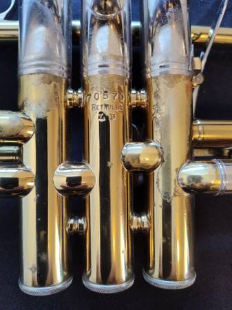 ( another on in my collection I am scaling down . This Reynolds Contempora is in excellent shape for year. s/n is 70579. Plays great and valves are nice , maybe a small ding or 2 nothing to talk about . I do have a Reynolds hard shell case . Absolutely a large bore. Normal finish wear for year but not bad