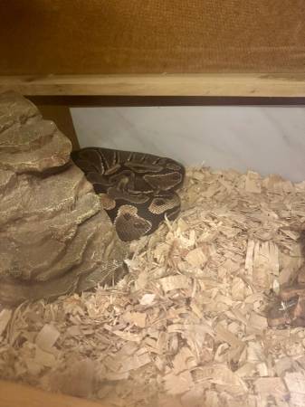 4 year old, 4 foot ball python, female, 8lbs. Very easy to handle and never been aggressive. Can come with or without homemade enclosure (made from old dresser, will need truck). Rehoming fee