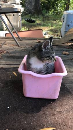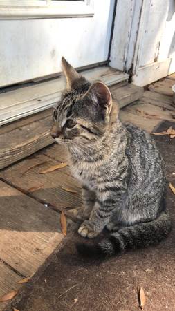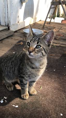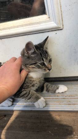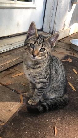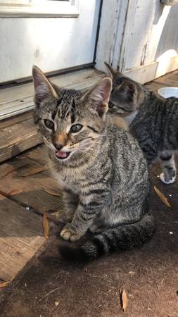 One male and 2 females. The females have white feet and necks. Eating solid food. Good with dogs and other cats. Good with children. Like to be petted. Can be indoor or outdoor pets.