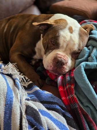 Male American bully, he is 6 years old, not neutered, doesn't like cats or other Male dogs, looking to rehome, his name is gizmo.
