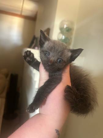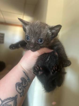 2 little black kittens ! They are 8 weeks as of Monday, using the litter box and eating dry food !