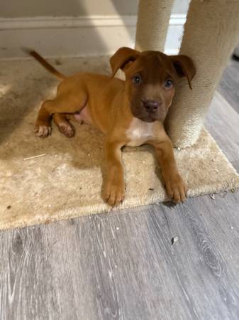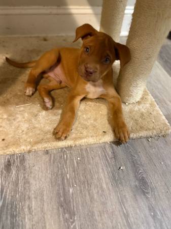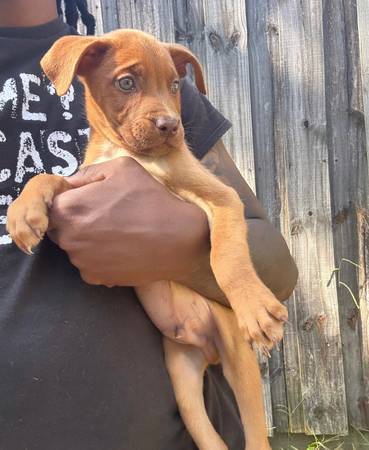 Puppy 8 weeks old. Boxer and lab mix. Has first shots and been dewormed. We are asking a small rehoming fee of 50 Available now. Very sweet and super playful.