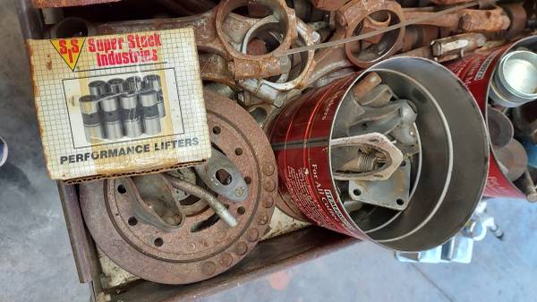 push rods, timing gears, rockers, 2 stock cams, BB internal balancer, lifters, valve covers, etc....