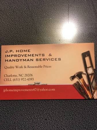 I’m an experienced handyman with 44 yrs experience! I have a minimum charge of $80 to preform any work! My prices are reasonable and I always do quality work! Call me or text for prices with complete location and what you need done? I do minor plumbing and electrical and carpenter with framing and trim skills! I also do garbage disposals and faucet and sinks, cabinets and vanity and light fixtures and ceiling fans and minor rotten wood and siding repair! I can assembly of most items including play sets and furniture! I hang TVs on wall for $80 yp to 65” you supply mount; wire concealment extra! You supply materials to save $$$ my cell phones are 828-999-0844 or 631-972-4393 contact jp call or text please with description of the work and any pictures! I have bad reception in my area so be patient with me and I will return your calls and text messages ASAP!!!! Thank you and all my past customers are 100% happy when I leave! Payment excepted is cash, or Apple Pay or personal checks at this time please!