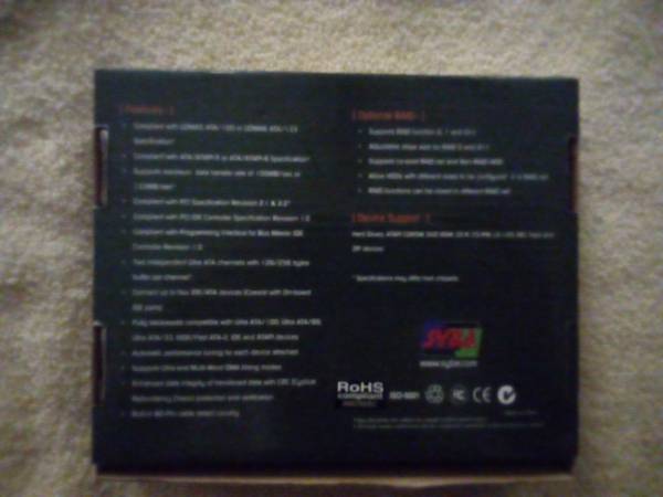 SYBA brand SD-ATA133R PCI controller card with 2 IDE slots. Comes with original box and driver/utility CD.
