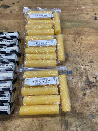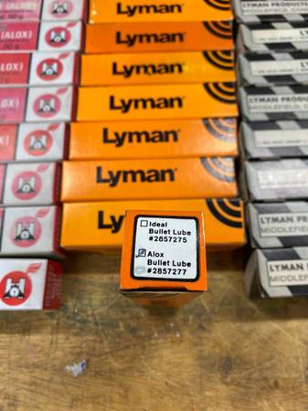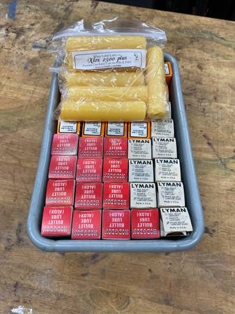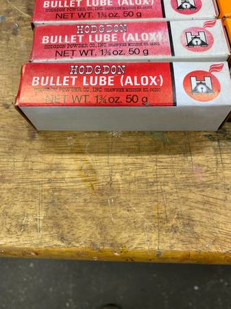 Bullet Lube-Alox Hodgdon-12 pieces Lyman #2857277-14 pieces Lyman Deluxe bullet lube-9 pieces White Label Xlox 2500 plus-18 pieces FREE 20 bullet case only CASH AND LOCAL SALES ONLY ALL SALES FINAL