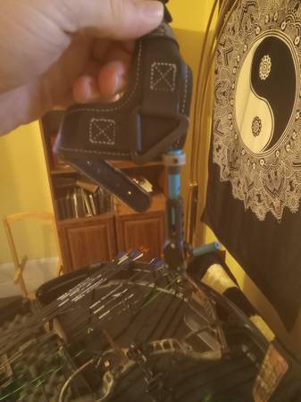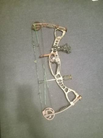 Hoyt compound bow and 24 arrow, 1 five pin sight,1 three pin sight,2 quick release arm bands. Has never been used for hunting just targets. It is a crx32.