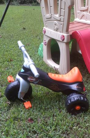 Kids outside toys in good condition. Slide $20 Blue trike $10 Harley Davidson 3 wheeler $5 Blue scooter $5 16"Tony Hawk Duo Sonic freestyle BMX bike in excellent condition.Asking price $40 Girls 18"...